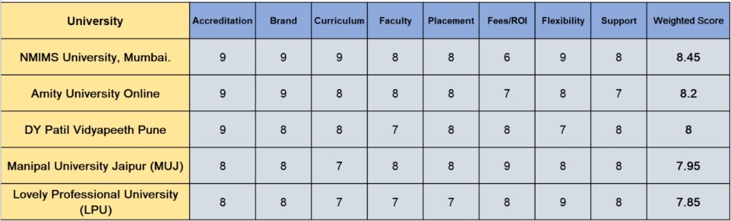 Choosing the right University for Online MBA in India is no longer a gamble when you use a methodical approach. The Weighted Score Method allows you to: